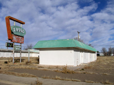 View looking east of the once great neon sign at the "Lasso Motel" on old Route 66 in Tucumari. A victim ofthe interstate.