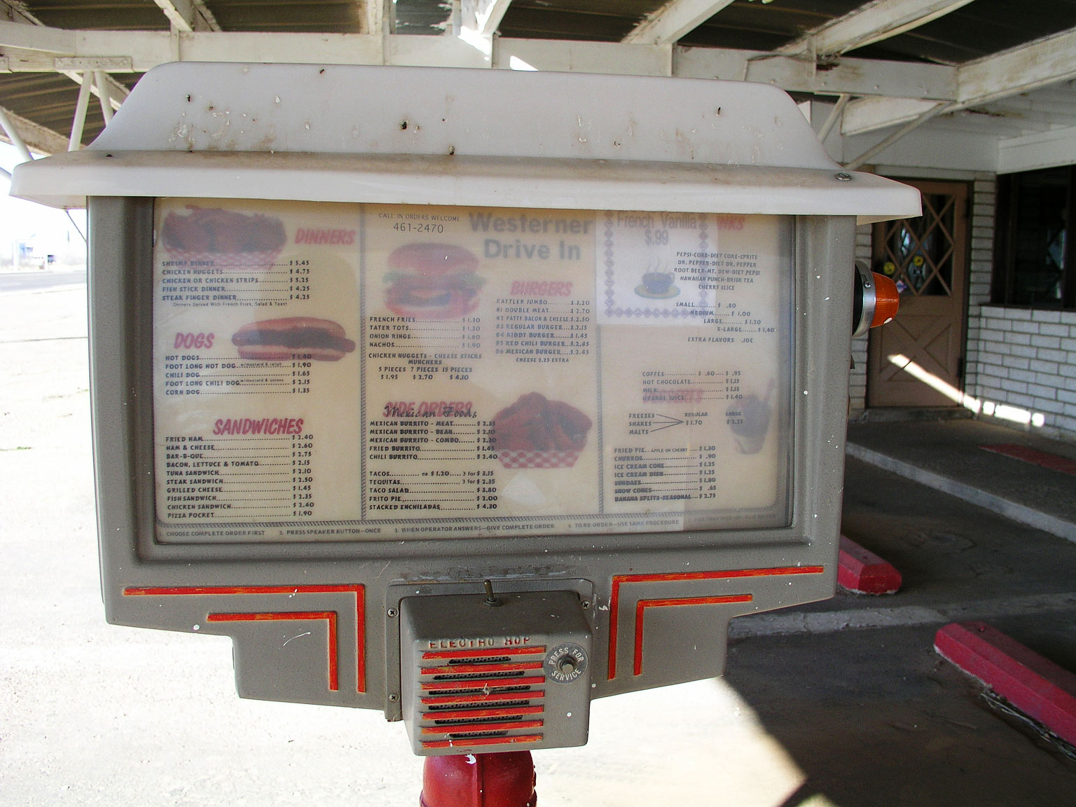 The menu at the exterior drive-up stations of the "Westerner".