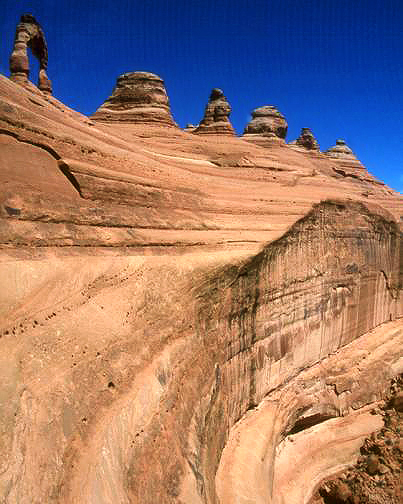 View from near the bottom of the pour off next to Delicate Arch in Arches National Park near Moab, UT.