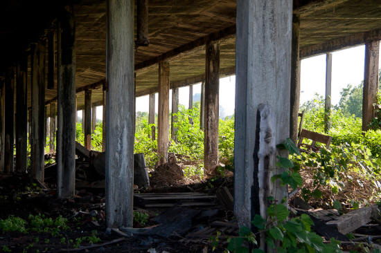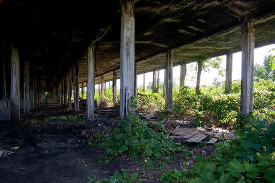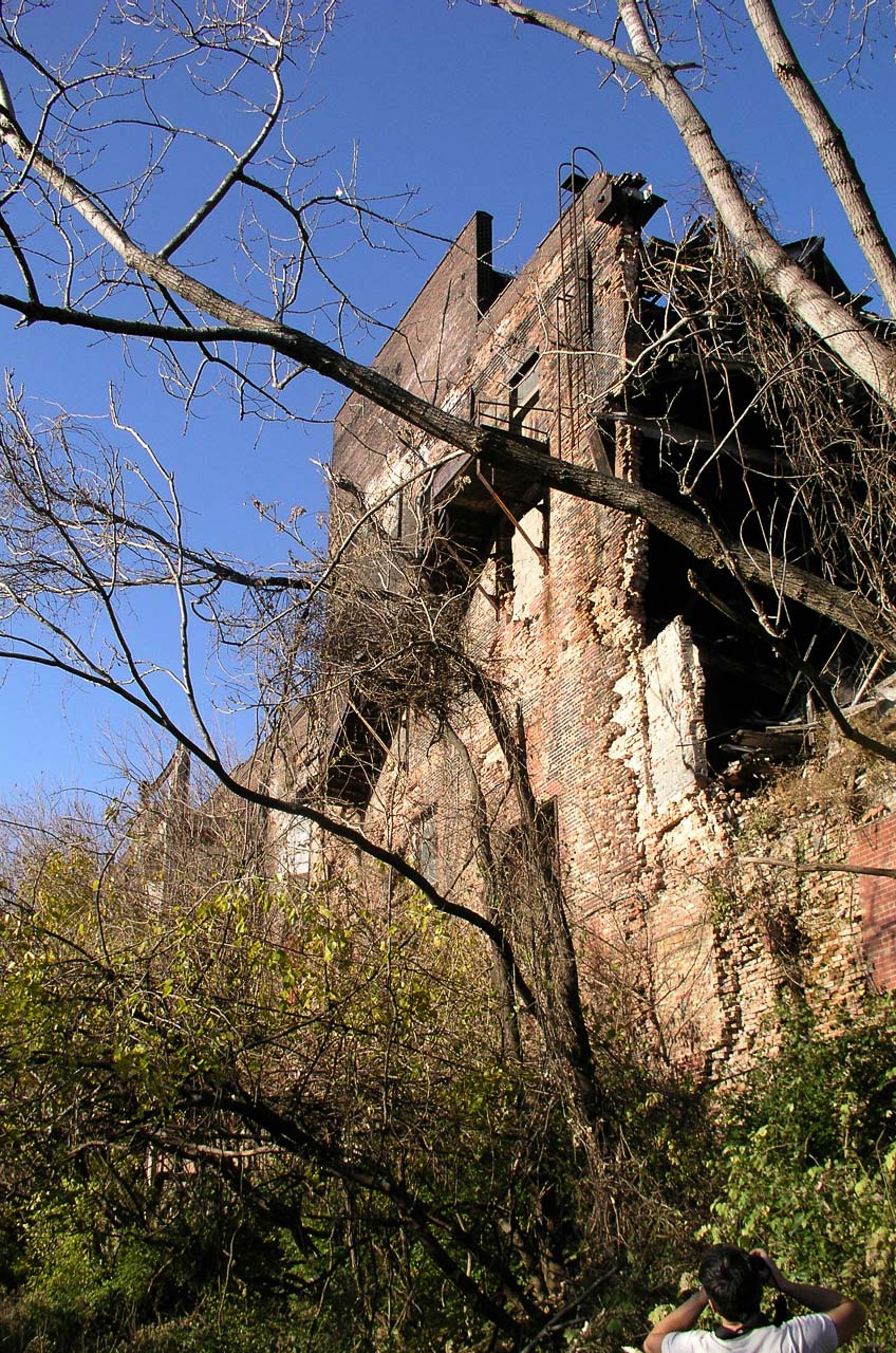 View east toward the ruins of the Armour Slaughterhouse and Meatpacking Plant in East