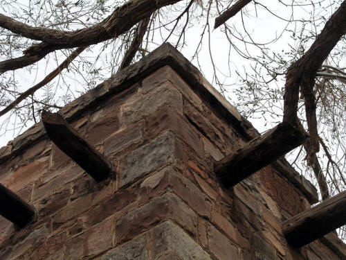 Another similar view as the previous looking east. The stairway embedded into the stone wall has been altered to make it inaccessible.