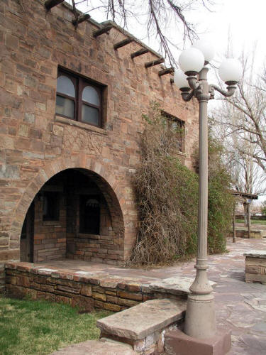 View northeast to the original hotel building. A great stairway to the roof has been embedded into the stone