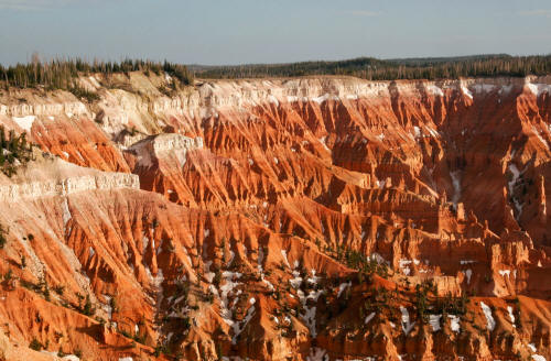 Conifers along the rim of the massive Cedar Breaks amphitheater at