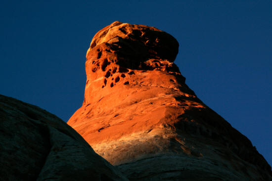 Zoomed view of detail in the Cedar Mesa Sandstone pinnacles near sunset.
