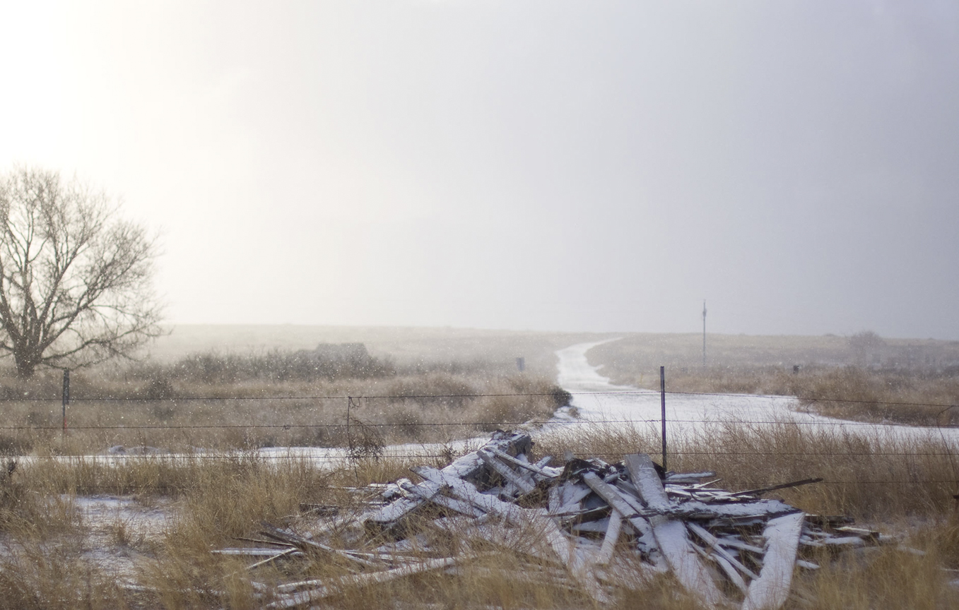 View into the first of two rooms. The roof shingles are gone in places. The sticks probably fell from a large cottonwood tree through the roof over
