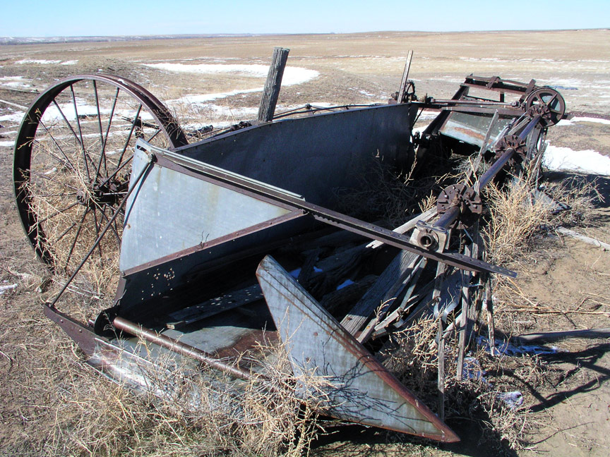 Line of old Farm Equipment in a back lot of an abandoned Farmstead in Colorado.