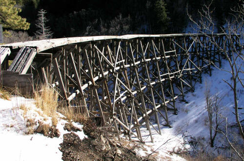 The rail line climbed 4000' in 26 miles and had several dozen wooden trestles.