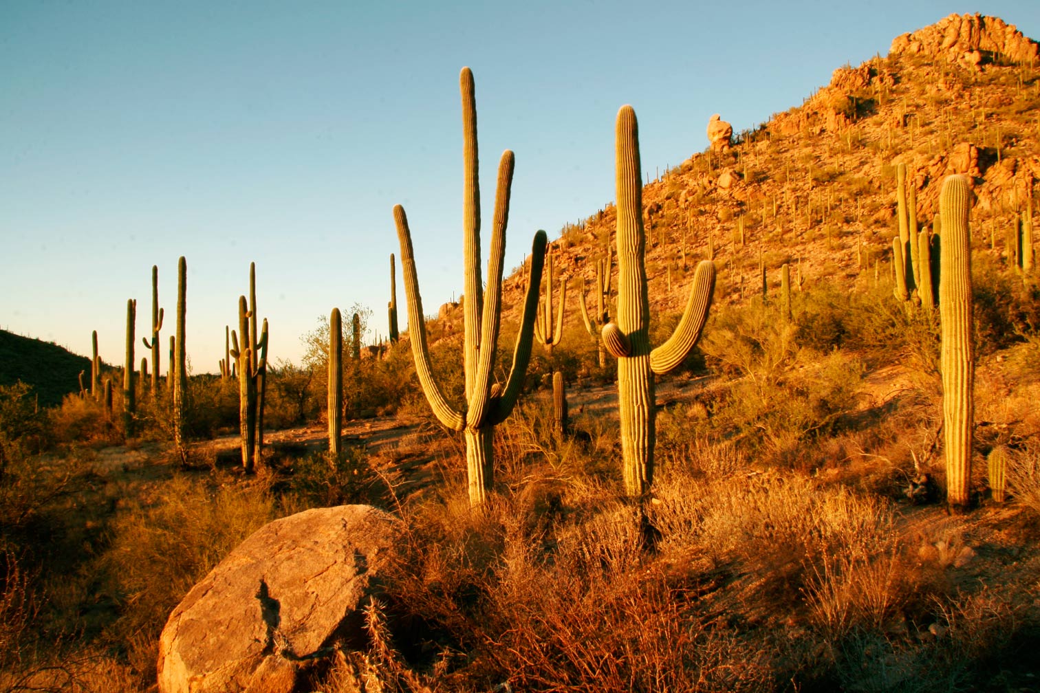 Looking northeast at Saguaro cactus along the Hugh Norris Trail.