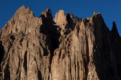 Close-up view of Shiprock from the west side of the pass that crosses the