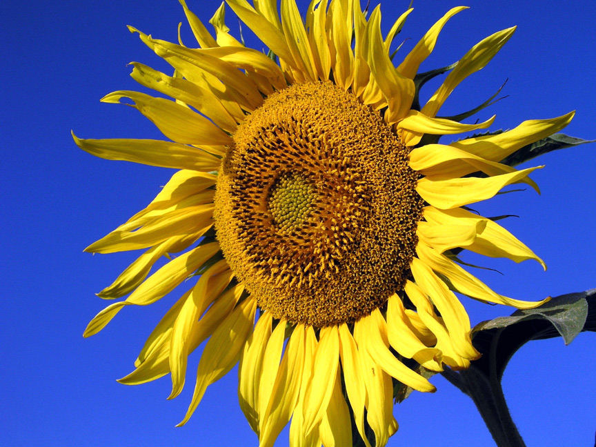 Close-up of sunflowers looking west.