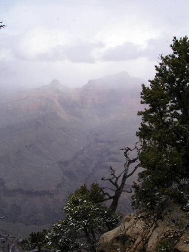Zoomed view looking northwest from The Abyss during a short snow storm.