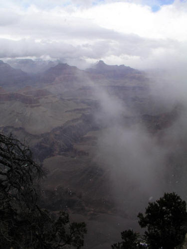 Zoomed view looking north from The Abyss during a short snow storm.