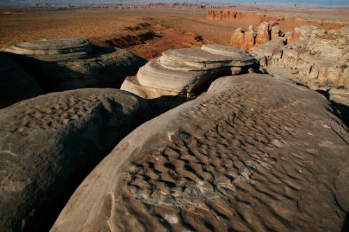 rippled sandy bottom of a shallow sea can be seen frozen in the cap rock.